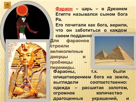 Фараон — одно из самых загадочных и величественных титулов в истории Древнего Египта. По свидетельствам археологических источников, фараоны были