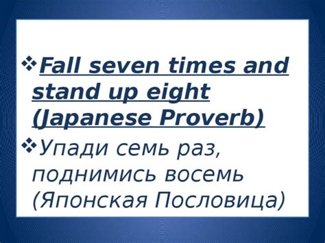 Фраза «Упади семь раз, поднимись восемь» – стала одной из самых известных и популярных японских пословиц. Эта фраза воплощает в себе глубокий