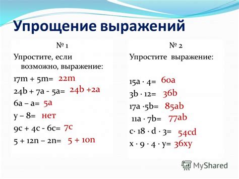 Упрощение выражений является важной темой в курсе алгебры для 7 класса. Оно позволяет упростить сложные выражения, сократить их и получить более простую форму.