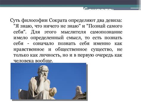 Фраза «познай самого себя» является одной из наиболее известных фраз Сократа. Сократ, древнегреческий философ, считал, что истинное знание начинается