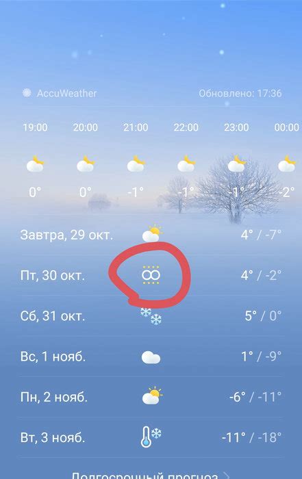 - Долгосрочный прогноз: значок бесконечности может быть использован для показа долгосрочных прогнозов, которые охватывают несколько недель или месяцев. Например, значок может отображаться на протяжении всего зимнего сезона, чтобы указывать на постоянные низкие температуры и снегопады.